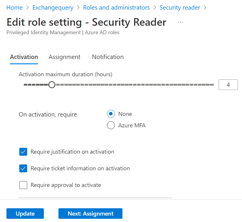 Add additional security settings as per the organization requirements like for example on activation require MFA