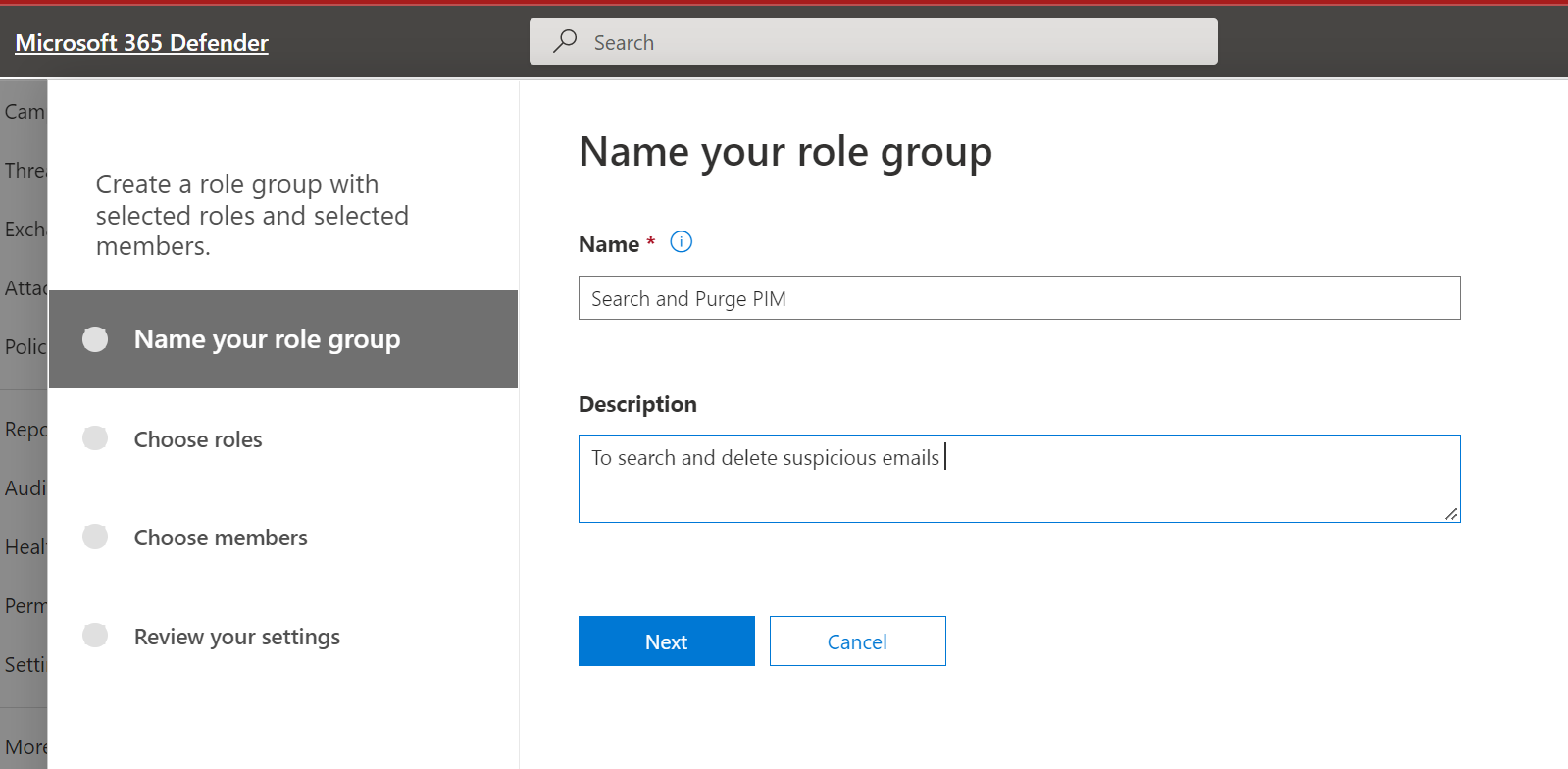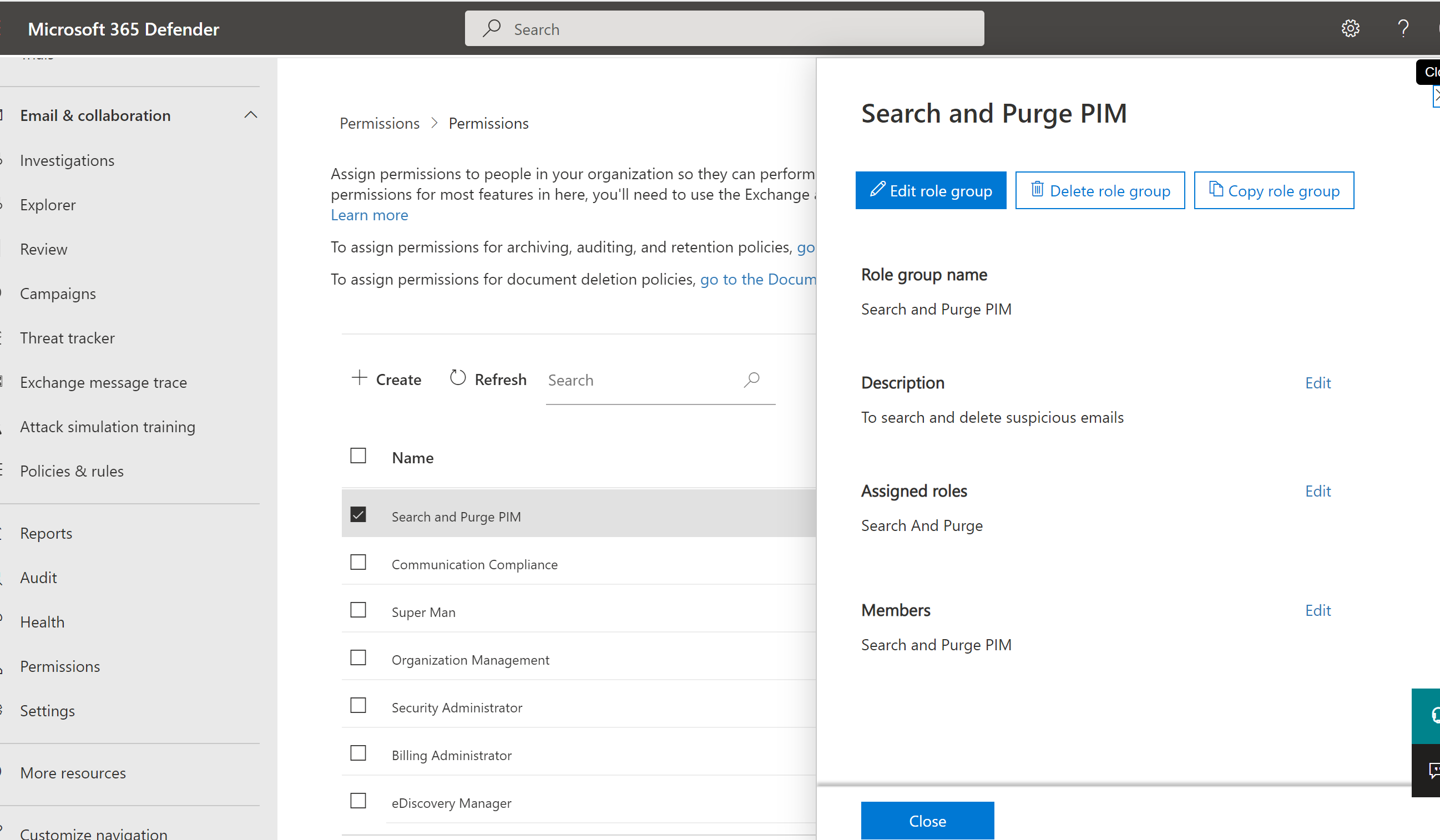 It’s always advisable to give the least amount of authorization for daily operational tasks, such as when an end user reports a suspicious spam email to the security team and helpdesk. There are circumstances when global admin is granted for this operation in this case, because by default there is no direct Azure AD built in roles for instance search & purge roles that is present in the compliance center.