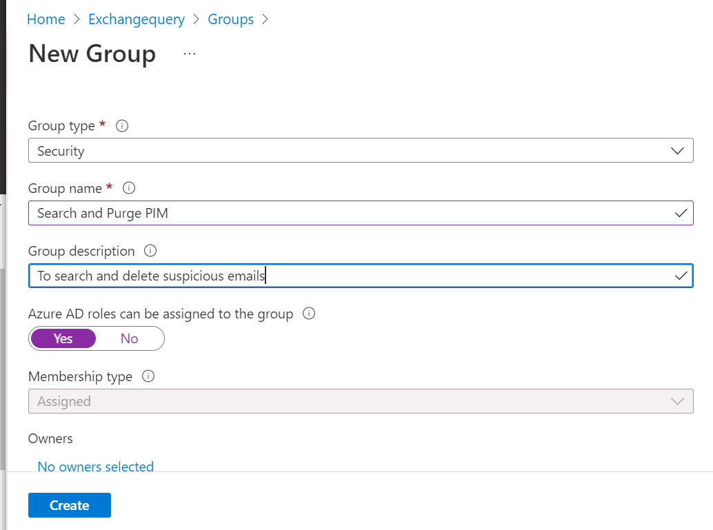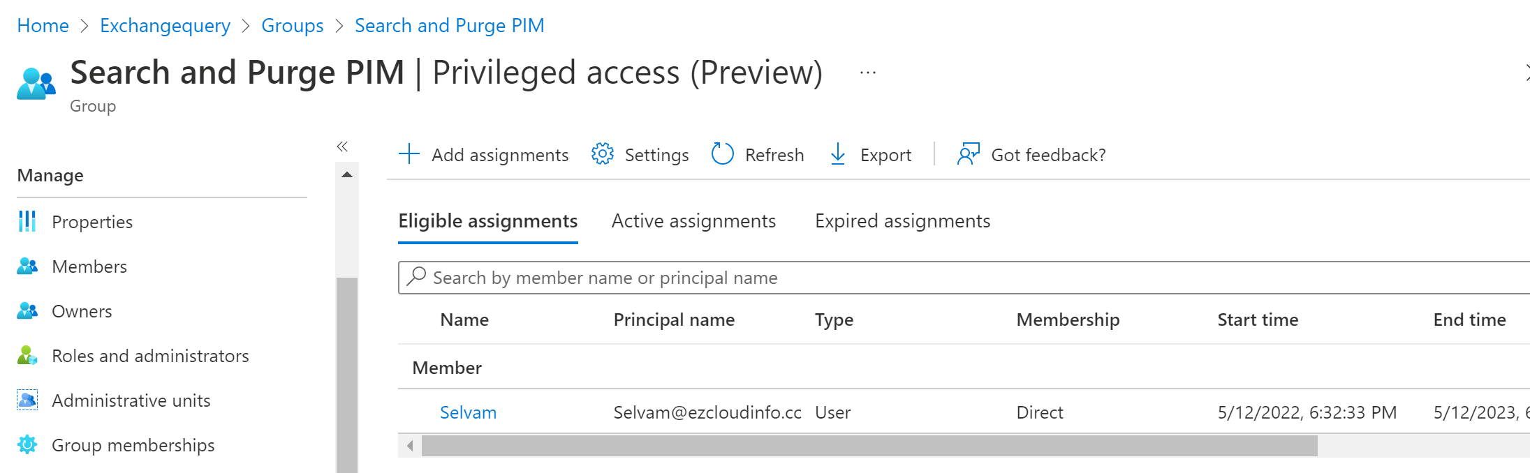 Though there is no direct way to assign the permission via Azure AD roles we have the option to connect it to office 365 security and compliance and add this group to search & purge role. We are going to look out for providing such access via this blog.