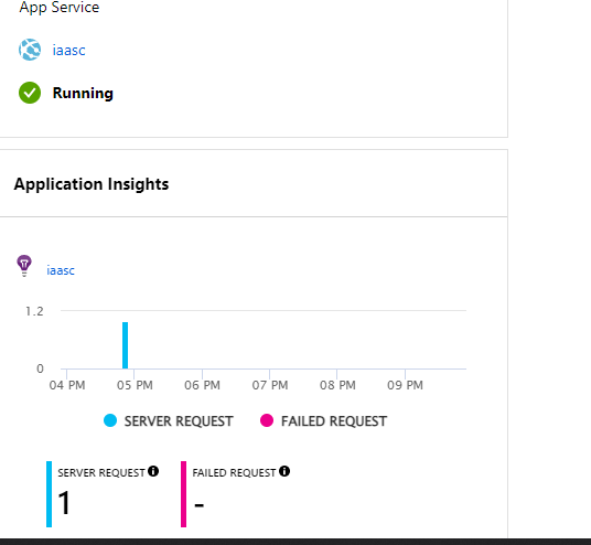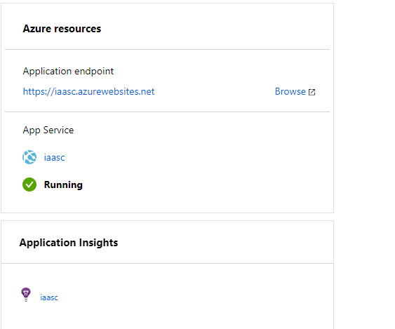 We also see the status of the app service running and the application insights which is helpful in our scenario.
