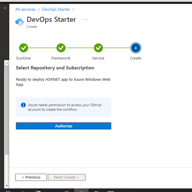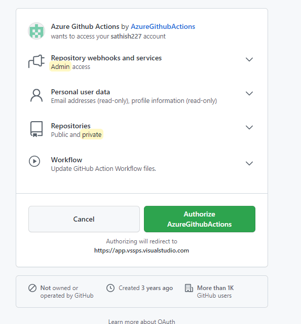 We need to authorize in the Github account so that Azure devops has the necessary permission to access Github and create the workflow.