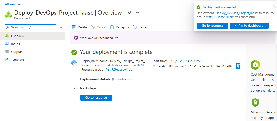 Now when we click on next the Azure will build the full devops pipeline and the required resources in the backend.
