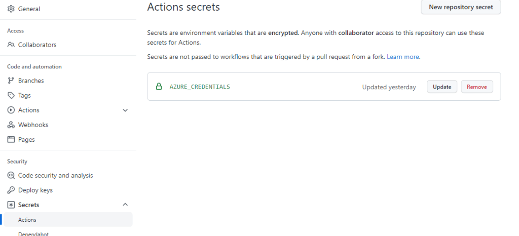 It is also important to note that a GitHub Subscription is required to create a repository there to maintain the source control. Here we need to mention the Git Hub Workspaces so that it can use that for this deployment