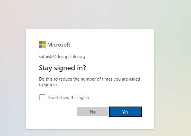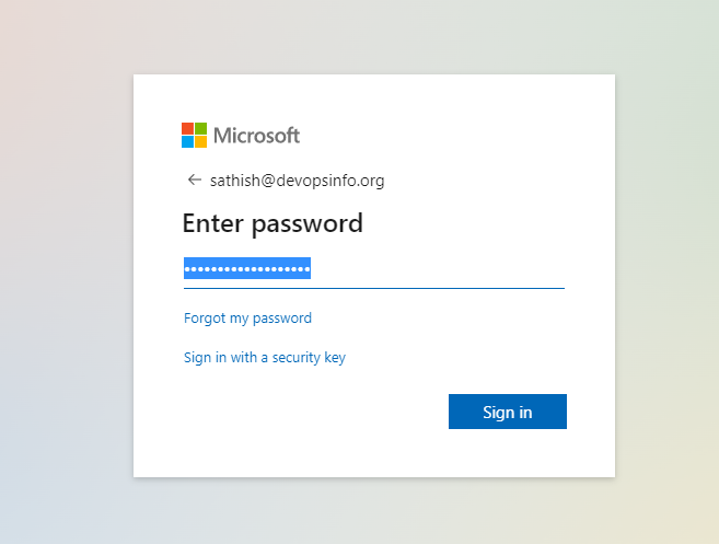 Post logging in we will be directed to security key setup to the common endpoint login.microsoft.com