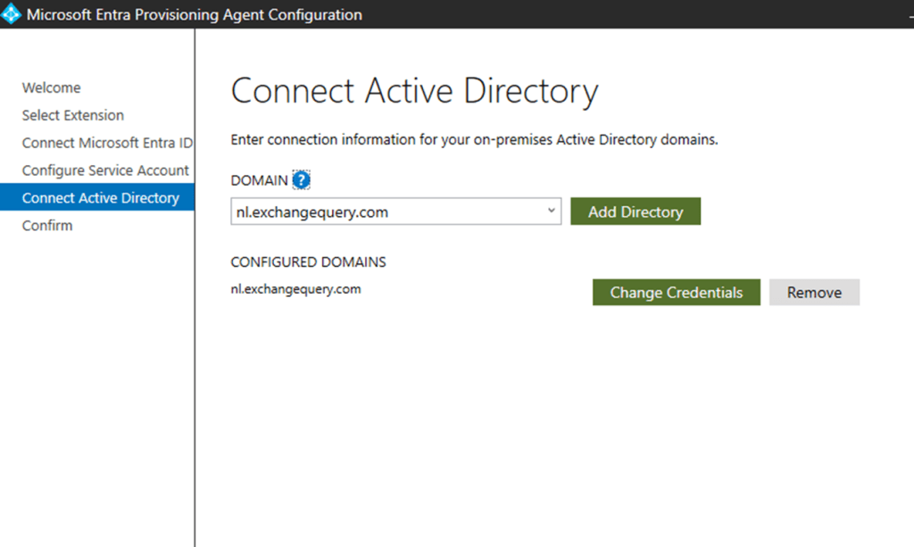 In the next step you’d be prompted with the domain that you’ve synched and wanted to sync