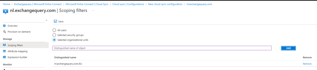 We will choose only a Pilot OU on this part to see if the synchronization is getting successful for these Pilot OU.