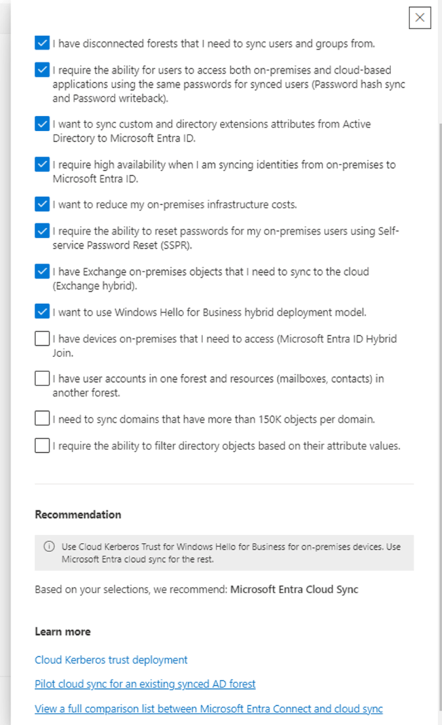 So here based on the selection you can decide if your organization is capable enough of moving to the Microsoft Entra Cloud Sync.