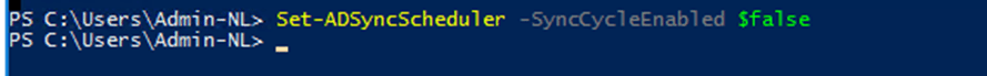 Run Set-ADSyncScheduler -SyncCycleEnabled $false.