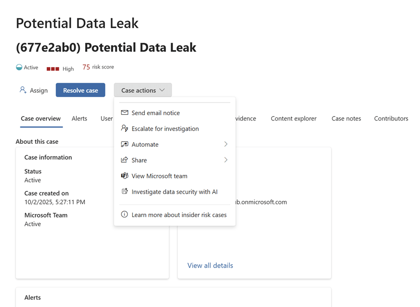 Go to: Microsoft Purview Portal > Insider Risk Management > Cases