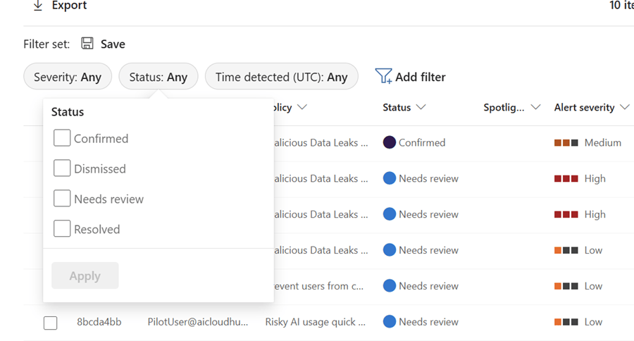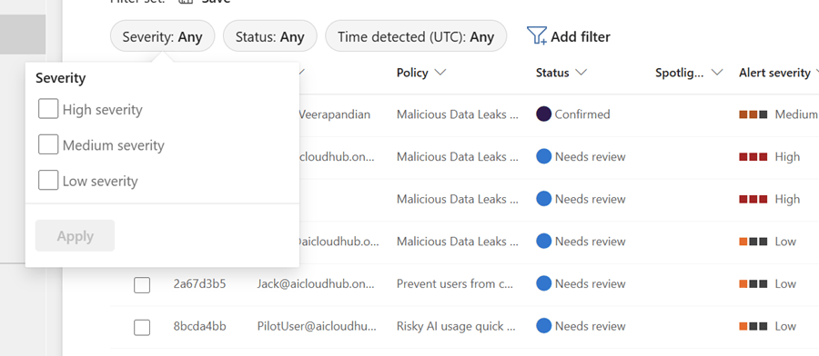 We have also option investigate Data Security with AI for better productivity of the SOC Team. This feature requires the DSPM for AI to be enabled.