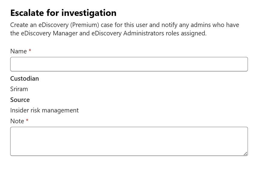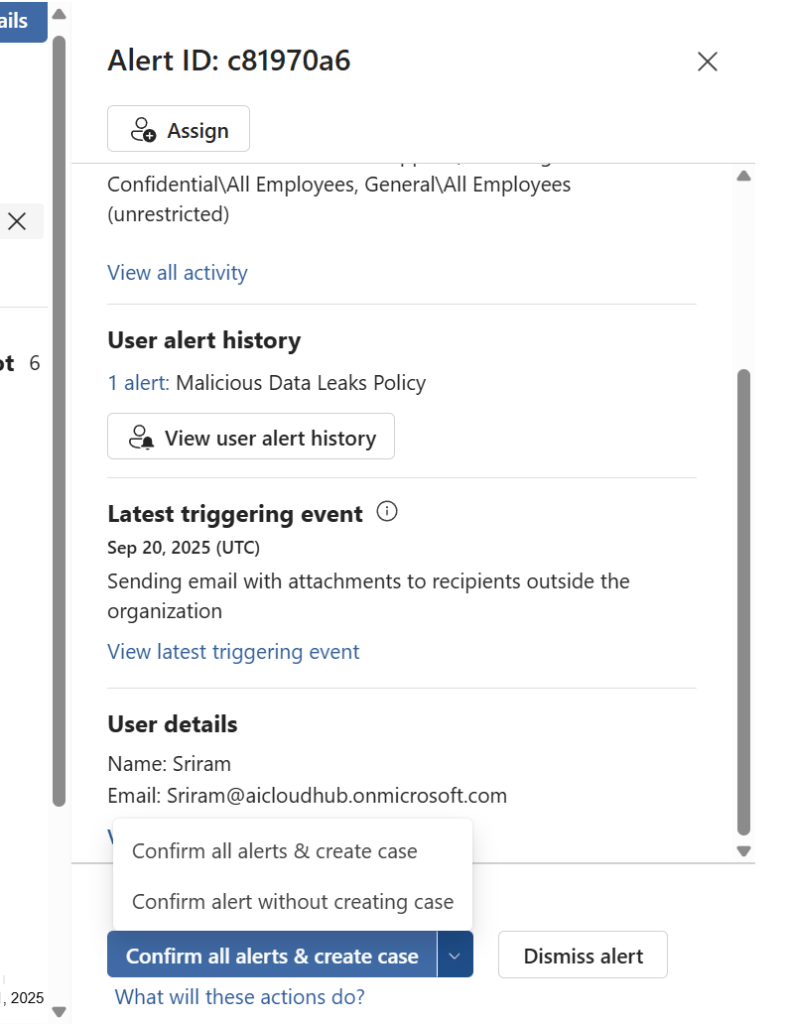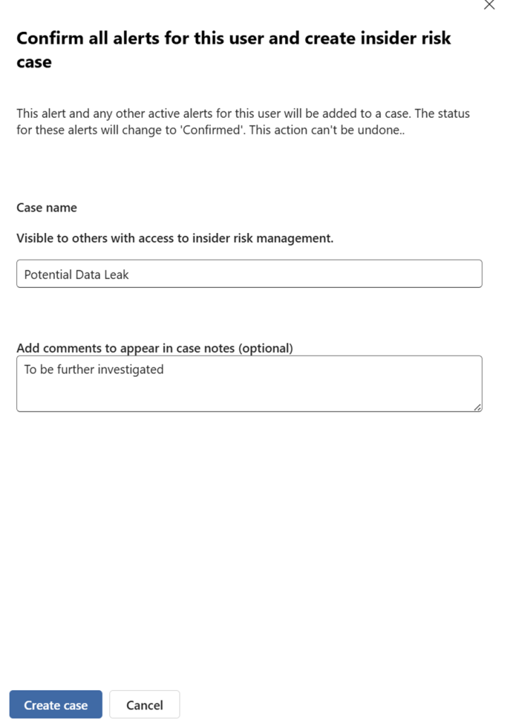 All these goes with few clicks and lets say if we click on confirm and create case it goes to the next step of investigation. Insider Risk Management Cases.