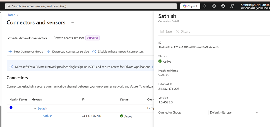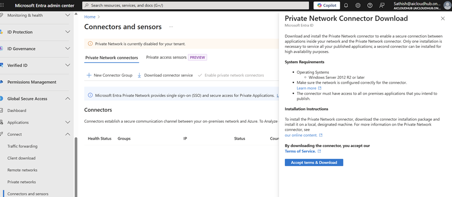 - In the Entra Admin Center, go to Global Secure Access → Connectors.