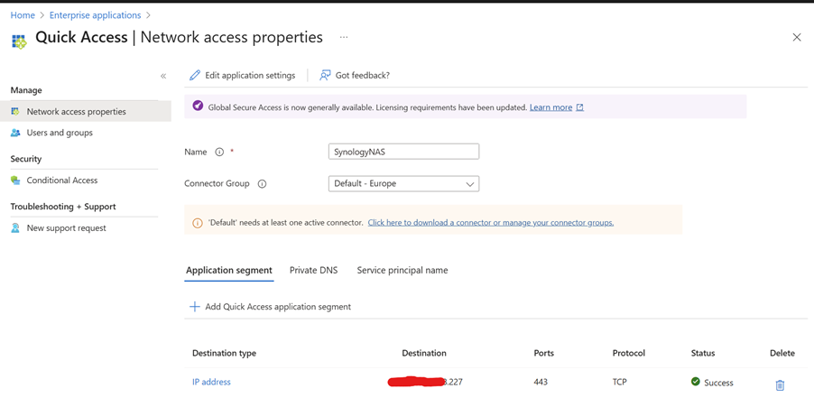 This ensures that when you access Synology the GSA client routes traffic correctly through the Private Access tunnel.