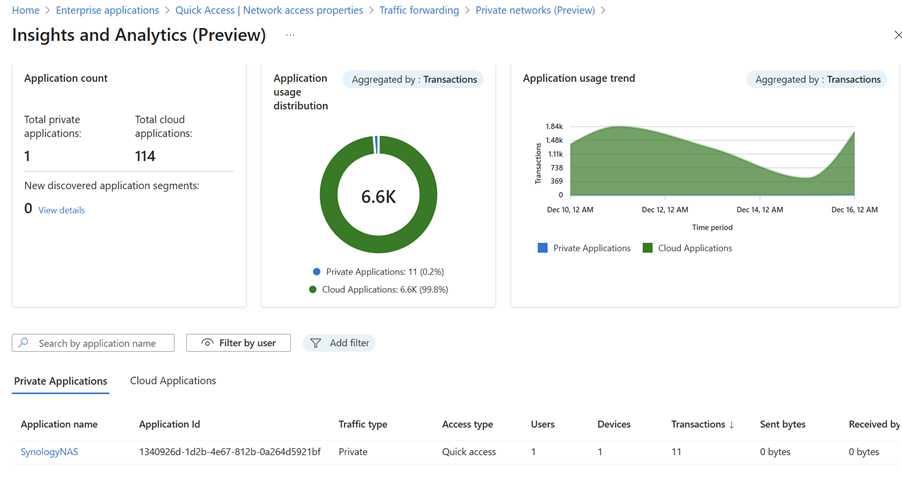 - Go to Global Secure Access → Insights and Analytics