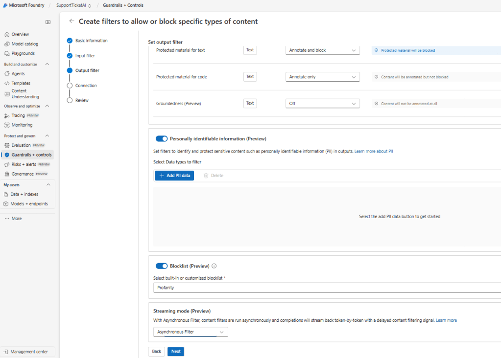 As AI systems move from proof of concepts to production, organizations must ensure their applications are safe, secure, and compliant without slowing teams down. Microsoft Azure Foundry brings these capabilities together under Guardrails & Controls, giving builders a central place to filter harmful content, govern agent behavior, block sensitive terms, and receive security insights.