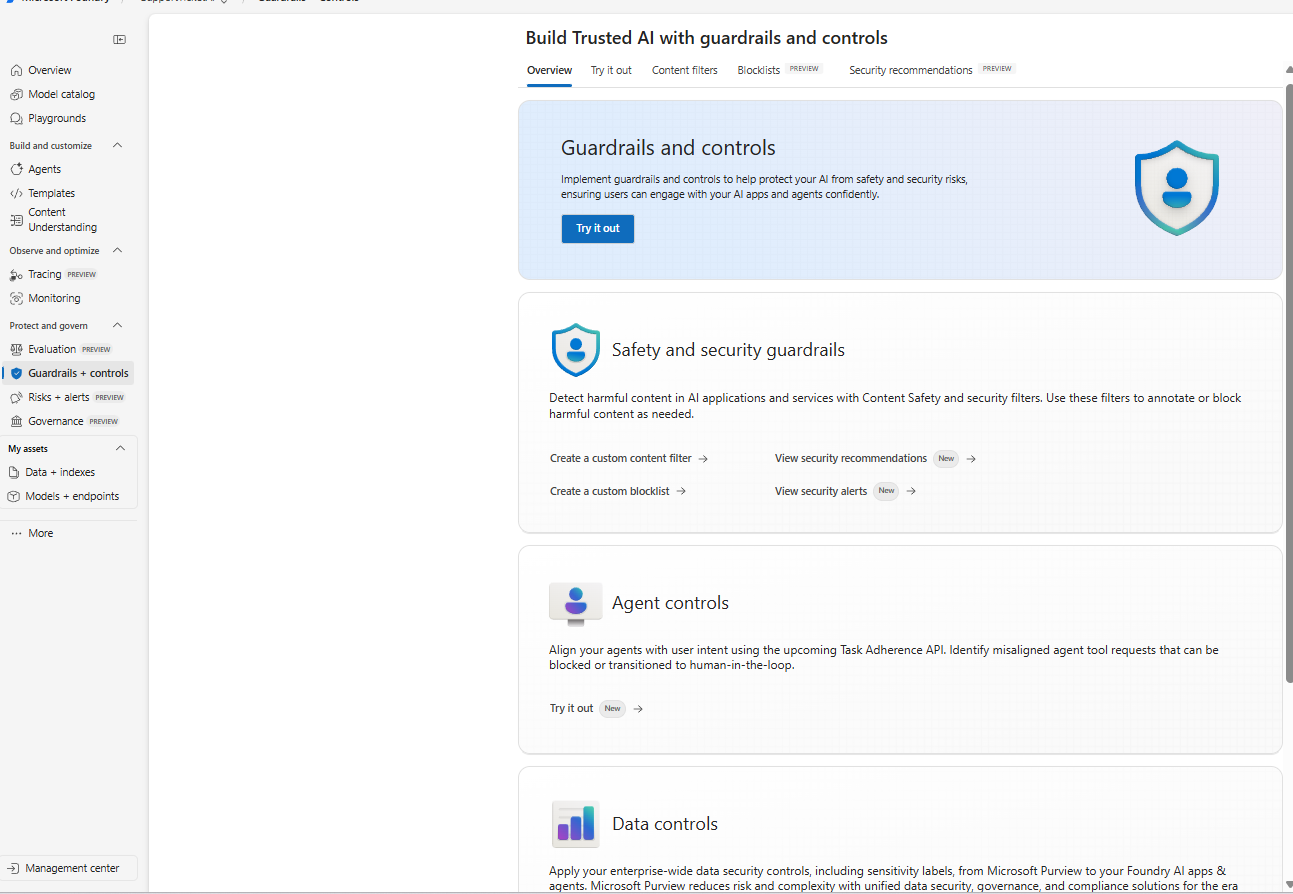 In this walkthrough, We’ll learn how to use the Guardrails & Controls workspace in Azure Foundry with a focus on four areas: