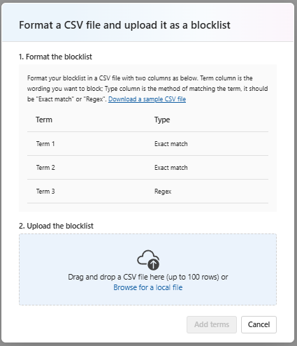 The Blocklists page where you can define one or more lists of terms and apply them across deployments.