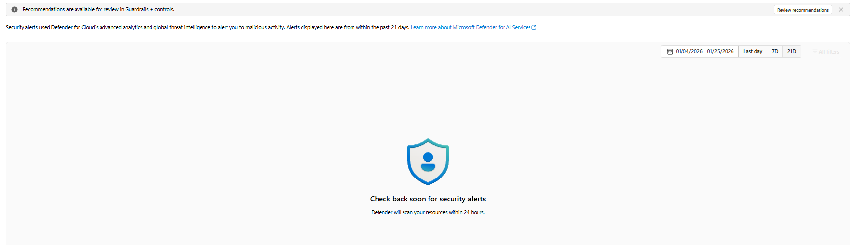 Security is more than content: Foundry integrates with Microsoft Defender for Cloud to surface security recommendations and alerts for your AI resources.