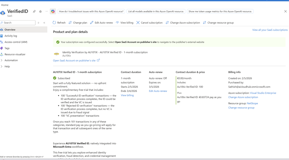 - The Verified ID resource is deployed successfully