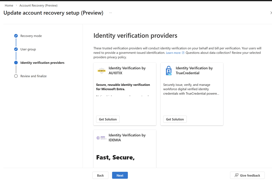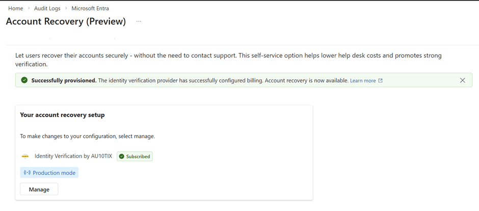 Microsoft Entra Verified ID transforms identity verification by enabling secure, privacy‑preserving, verifiable credentials. Whether you’re implementing Account Recovery (Preview) or integrating a trusted identity verification partner like AU10TIX, the onboarding process requires a few key steps: enabling the provider, provisioning resources, activating the integration, and validating the recovery flow.