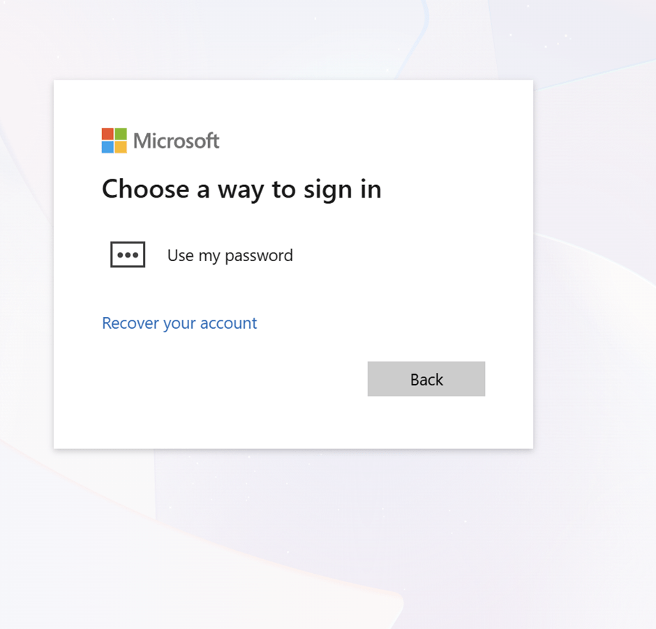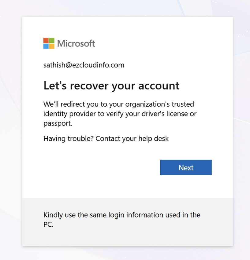 And then you see the option Recover your Account. Keep in mind you will not see recover your account option if you are testing this with an account that does not have Authenticator setup.