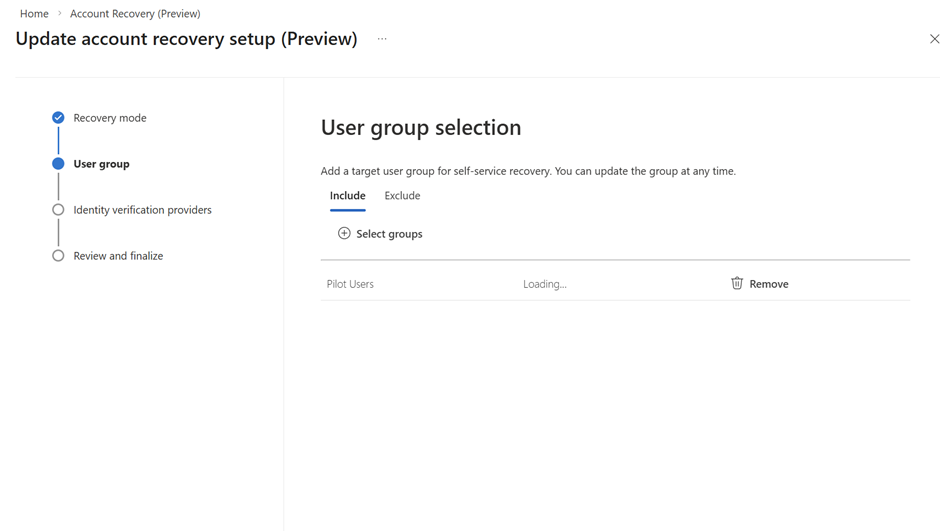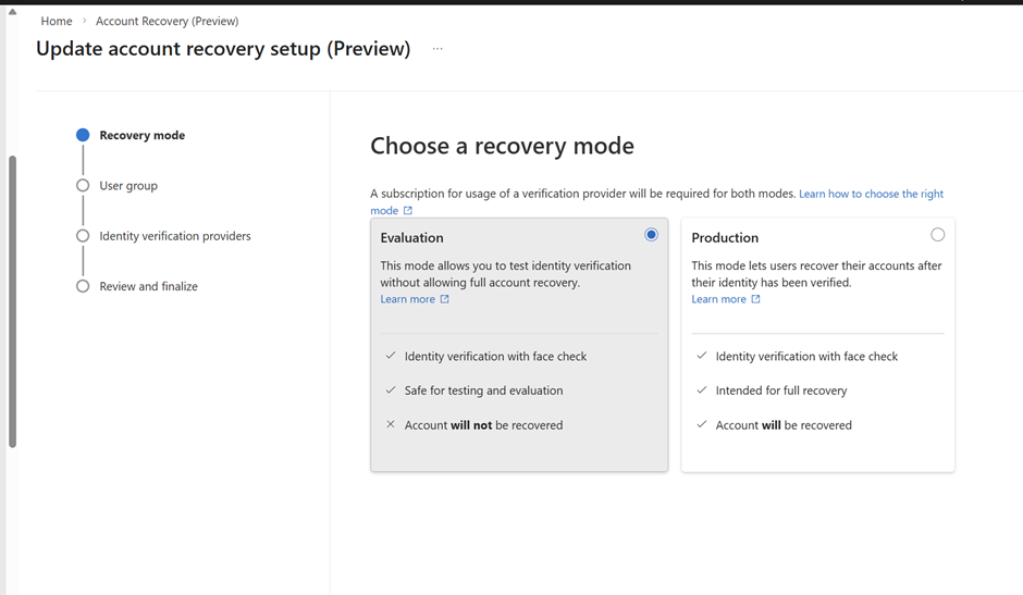 You need to have the Verified ID setup properly configured in your tenant first and the foremost thing to do before proceeding to any steps. If this one is not setup then the account recovery (Preview) is not going to work . Especially your domain needs to be a verified domain here.