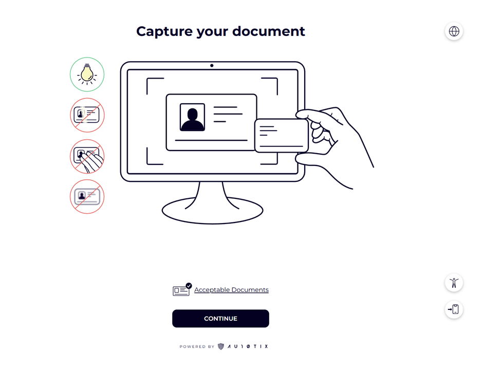 In the next screen we will be asked to capture your document that proves your identity