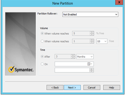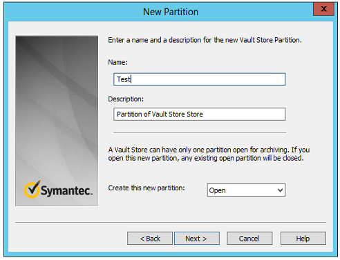 Give it a name and select the option whether open or closed. If you keep this partition open then partition rollover can happen if any of the other partition are full. If you keep it closed then rollover to this partition will not happen.