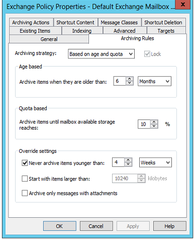 a) Archive policy based on mailbox quota and number of months. eg: If the quota exceeds 80 percent and emails greater than 5 months should be archived.