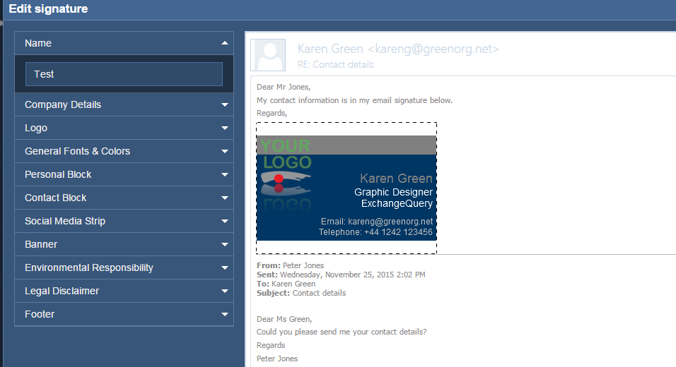 So this signature pulls all the information like Name, Company, Phone Number ..etc from the information present in the mailbox.